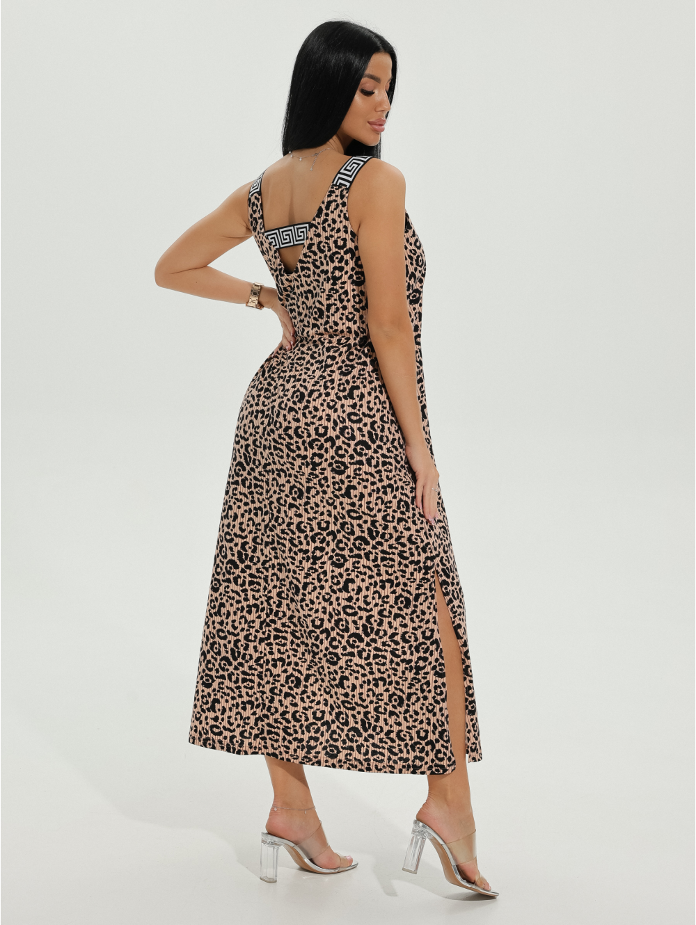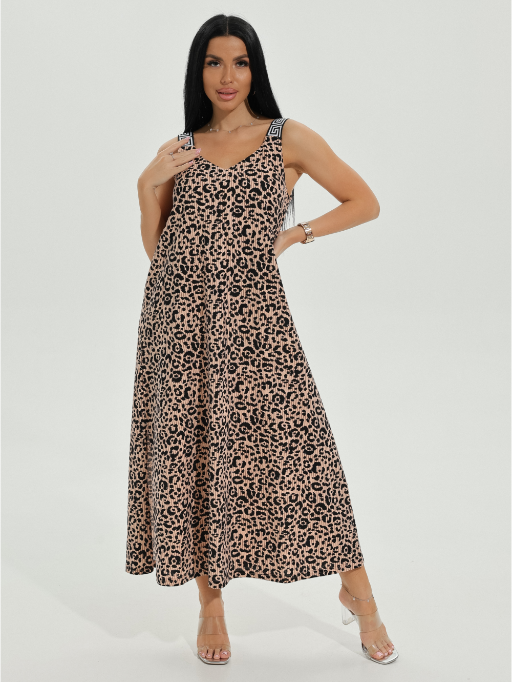 Сарафан женский Амира А-образного силуэта, длиной до щиколотки. Вырез горловины на полочке и спинке V- образный.