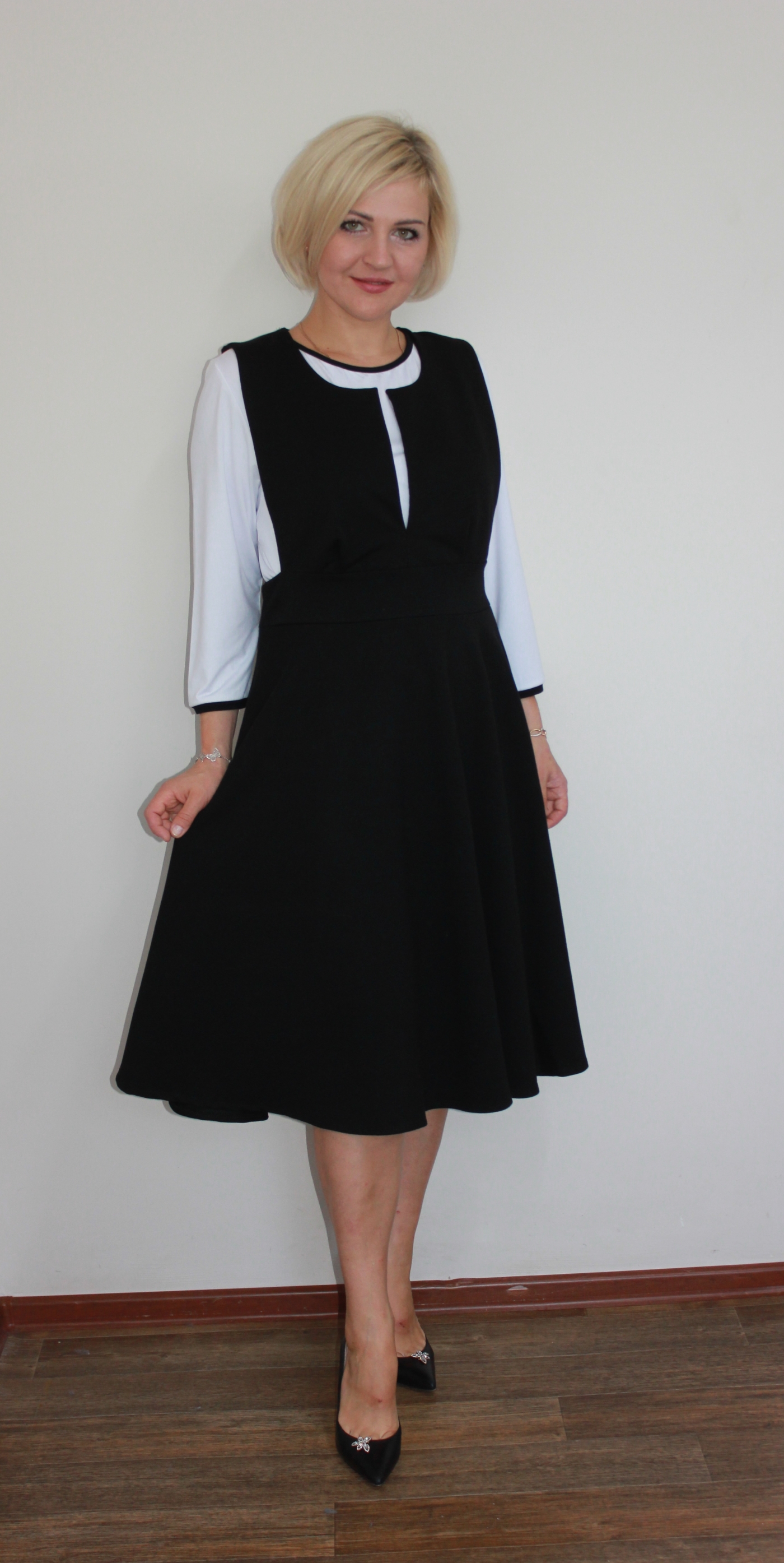 фасон сарафана С3072 подходит для сочетания с блузами и футболками,