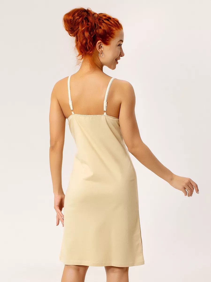 Сорочка "Бьюти" / Бежевый арт. к1353бж из однотонной хлопковой ткани на бретелях из декоративной резинки. Оптимальная длина изделия, при которой будет максимально комфортно. Невероятно привлекательно смотрится декоративная отделка кружевом. Такая сорочка ни в коем случае не останется без внимания. Она прекрасно подойдёт и для женщин находящихся в положении, так как верх изделия разработан для максимального комфорта во время кормления грудью.