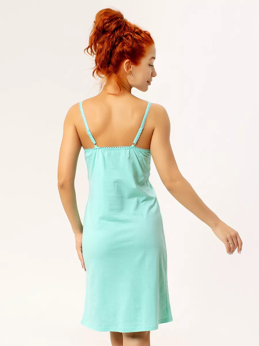 Сорочка "Бьюти" / Мятный арт. к1353м из однотонной хлопковой ткани на бретелях из декоративной резинки. Оптимальная длина изделия, при которой будет максимально комфортно. Невероятно привлекательно смотрится декоративная отделка кружевом. Такая сорочка ни в коем случае не останется без внимания. Она прекрасно подойдёт и для женщин находящихся в положении, так как верх изделия разработан для максимального комфорта во время кормления грудью.