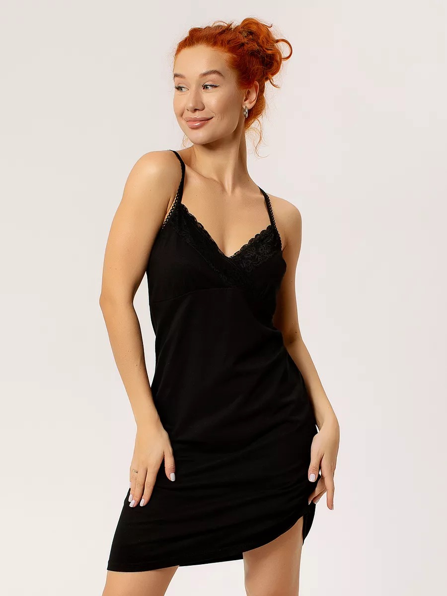 Сорочка "Бьюти" / Чёрный арт. к1353Ч из однотонной хлопковой ткани на бретелях из декоративной резинки. Оптимальная длина изделия, при которой будет максимально комфортно. Невероятно привлекательно смотрится декоративная отделка кружевом. Такая сорочка ни в коем случае не останется без внимания. Она прекрасно подойдёт и для женщин находящихся в положении, так как верх изделия разработан для максимального комфорта во время кормления грудью.