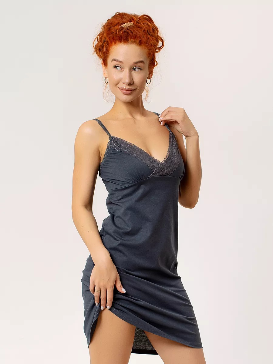 Сорочка "Бьюти" / Тёмно-серый арт. к1353тс из однотонной хлопковой ткани на бретелях из декоративной резинки. Оптимальная длина изделия, при которой будет максимально комфортно. Невероятно привлекательно смотрится декоративная отделка кружевом. Такая сорочка ни в коем случае не останется без внимания. Она прекрасно подойдёт и для женщин находящихся в положении, так как верх изделия разработан для максимального комфорта во время кормления грудью.