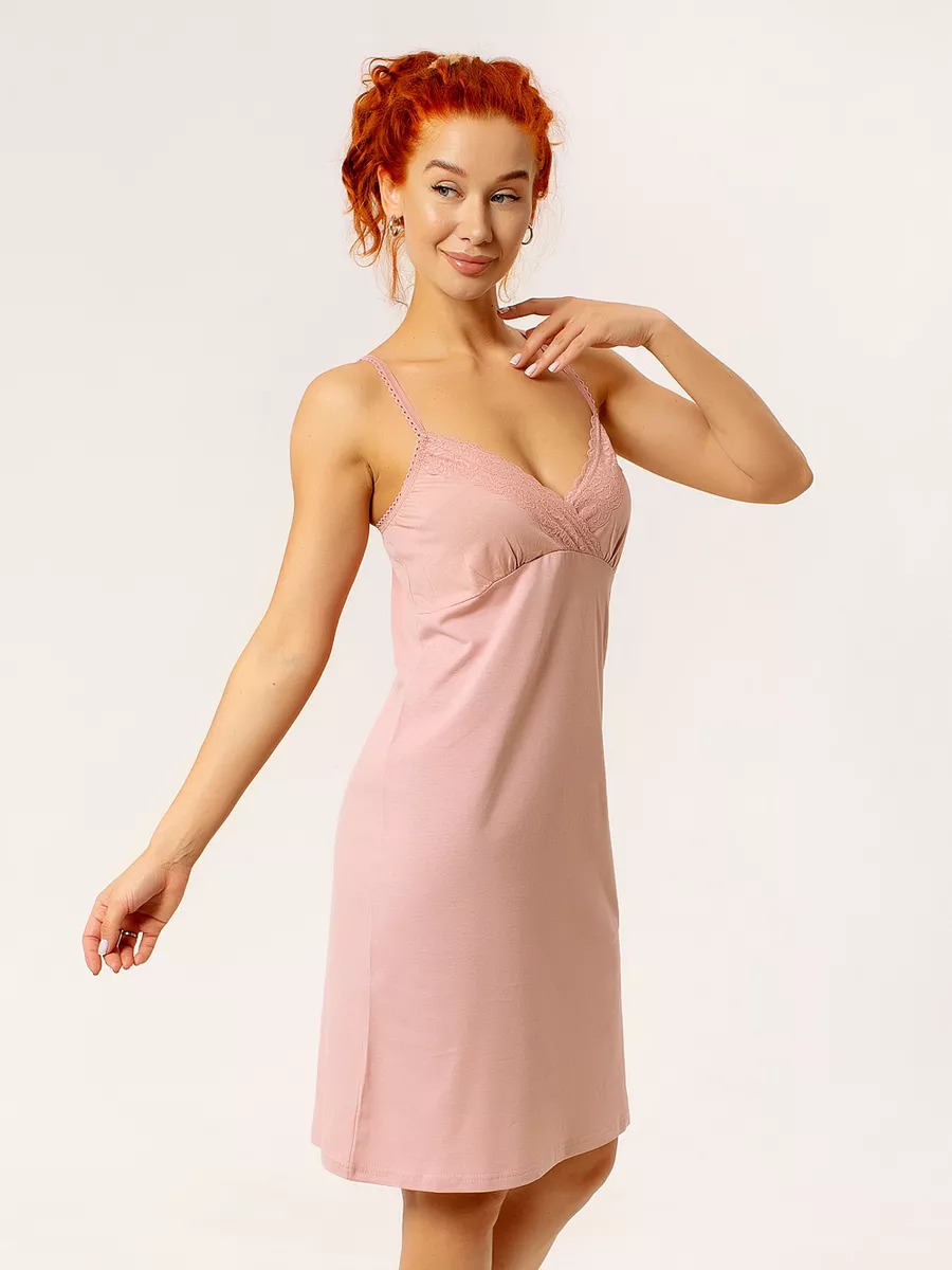 Сорочка "Бьюти" / Пудровый арт. к1353пд из однотонной хлопковой ткани на бретелях из декоративной резинки с регуляторами. Оптимальная длина изделия, при которой будет максимально комфортно. Невероятно привлекательно смотрится декоративная отделка кружевом. Такая сорочка ни в коем случае не останется без внимания. Она прекрасно подойдёт и для женщин находящихся в положении, так как верх изделия разработан для максимального комфорта во время кормления грудью.