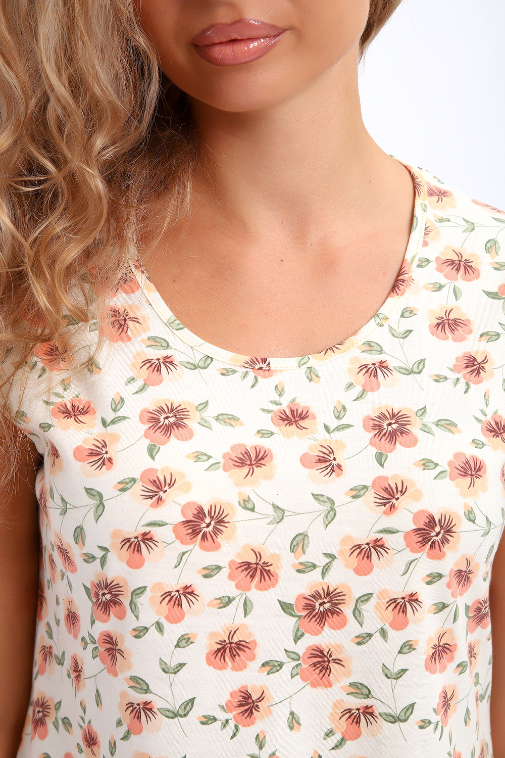 Сорочка маечного фасона без рукава с закругленным подолом. Подходит для сна и отдыха.