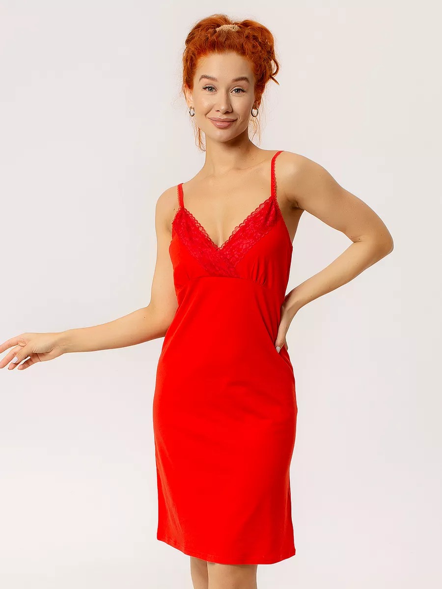 Сорочка "Бьюти" / Красный арт. к1353к из однотонной хлопковой ткани на бретелях из декоративной резинки. Оптимальная длина изделия, при которой будет максимально комфортно. Невероятно привлекательно смотрится декоративная отделка кружевом. Такая сорочка ни в коем случае не останется без внимания. Она прекрасно подойдёт и для женщин находящихся в положении, так как верх изделия разработан для максимального комфорта во время кормления грудью.