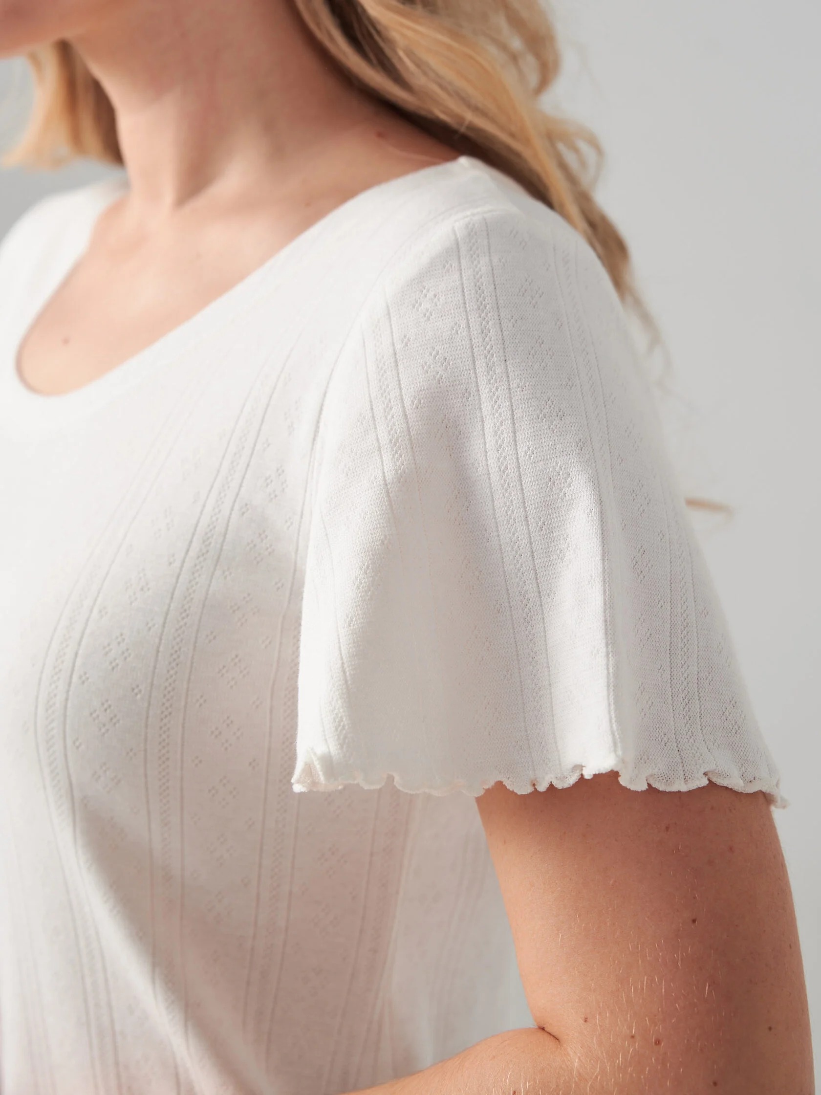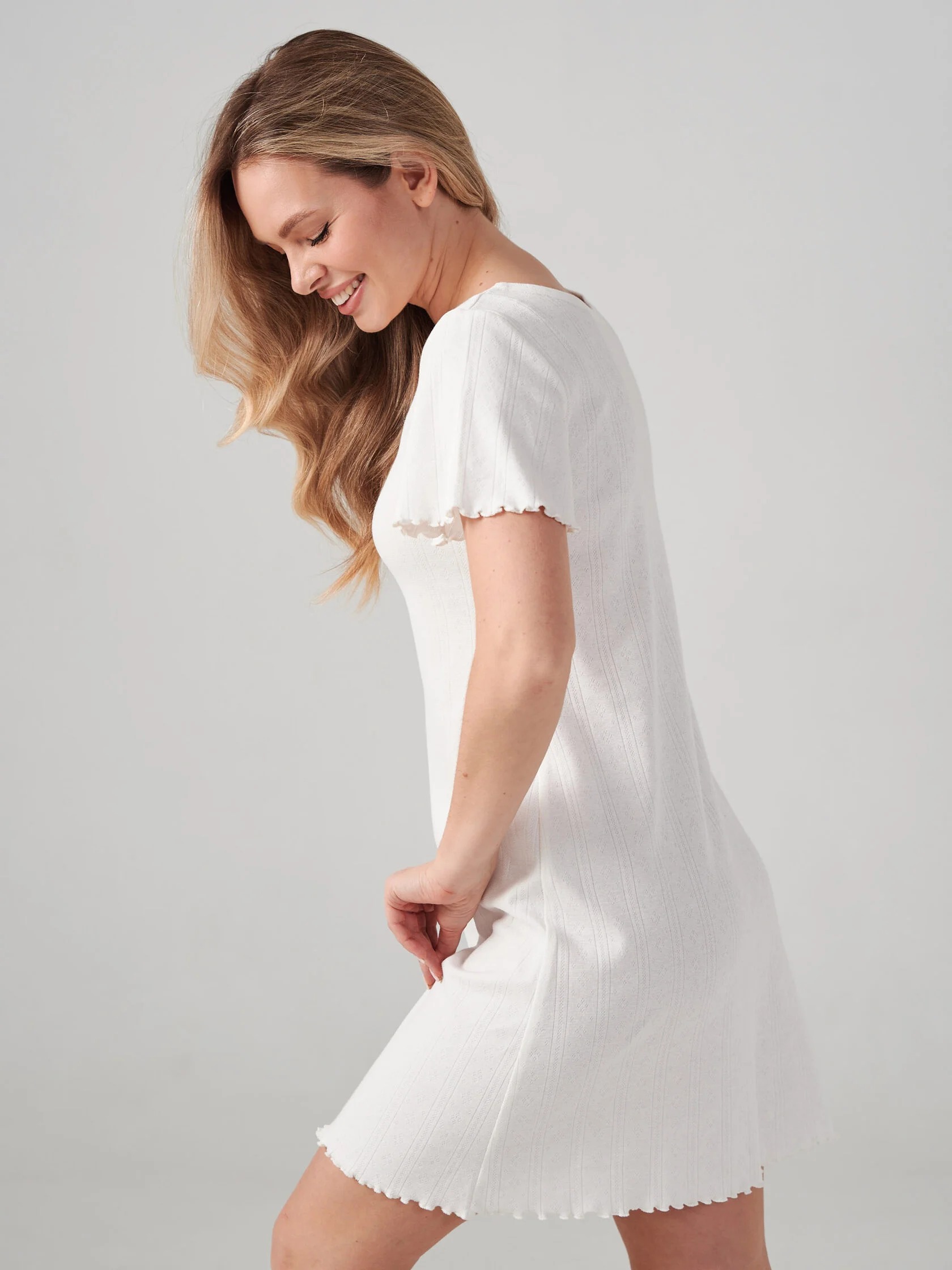 Женская сорочка из ажурной рибаны — это модель домашней одежды, сочетающая комфорт, эстетику и практичность. Рибана — это трикотаж с двойным переплетением волокон, который имеет рельефную структуру мелкой «резинки» и одинаковый рисунок лицевой и изнаночной стороны. Ажурный узор придаёт изделию лёгкость и романтичность.