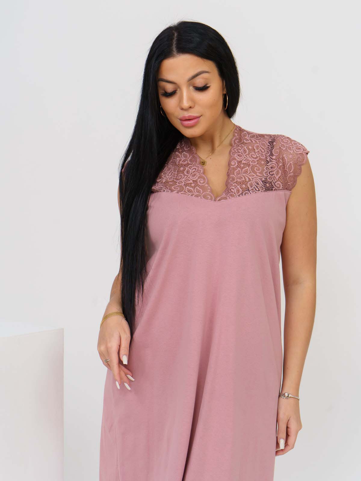 Сорочка мод.1649/2 / Пудровый оформлена кружевом, что добавляет ей романтичности, идеально ложится по фигуре, не стесняет движений! Кружево придает сорочке воздушность и нежность. В этой ночнушке Вы почувствуете себя ухоженной и современной. Привлекает мужской взгляд!
