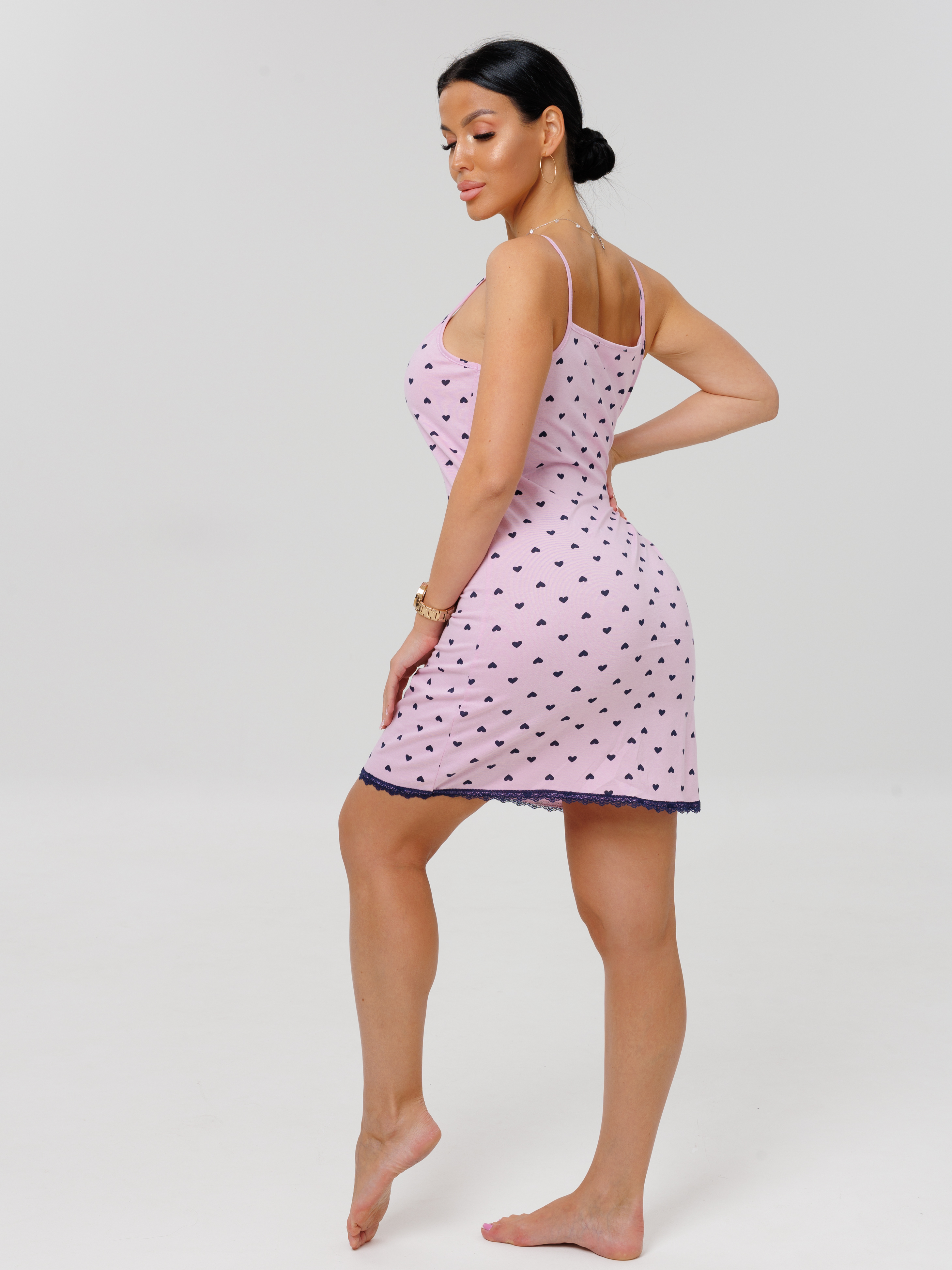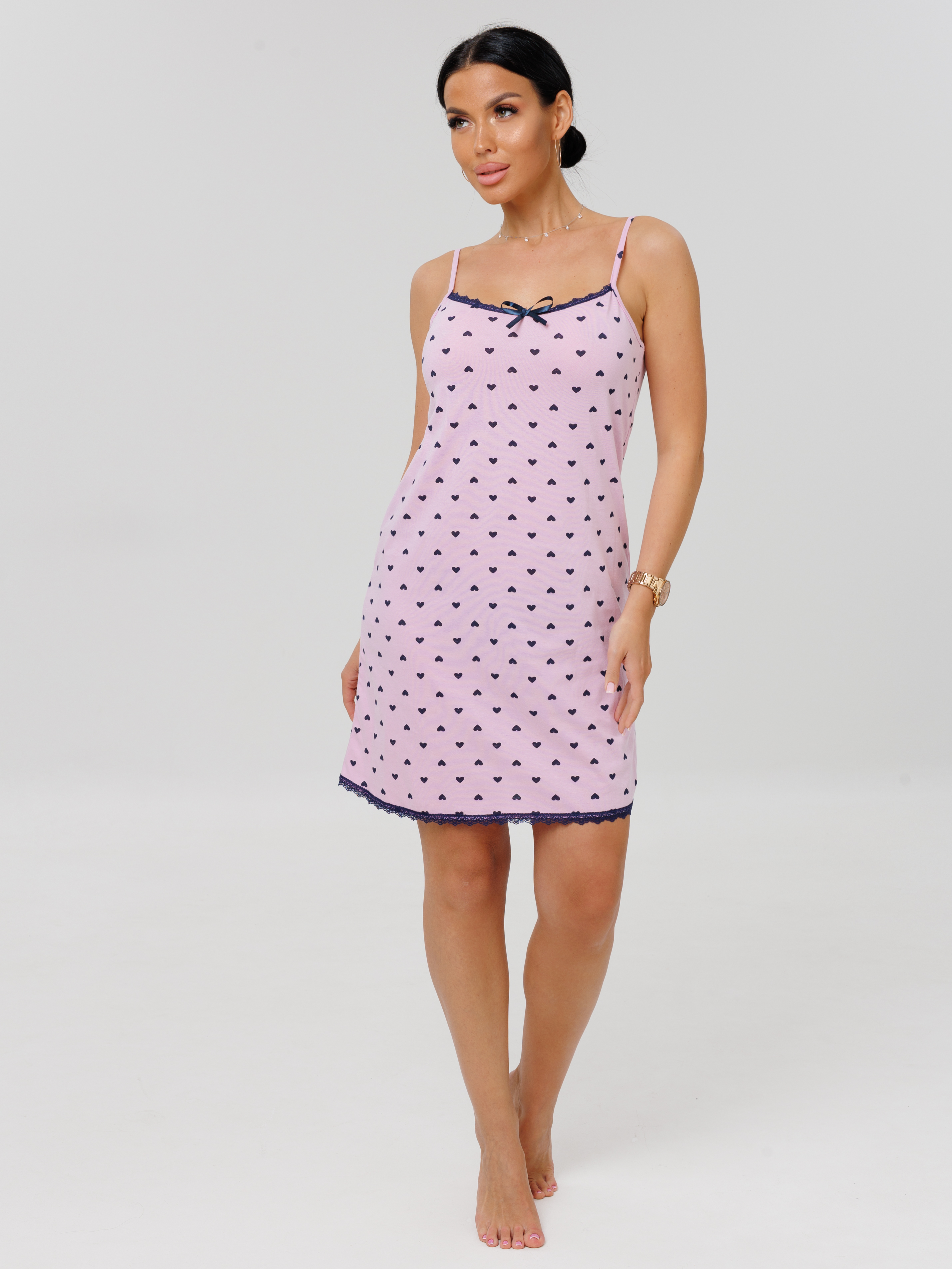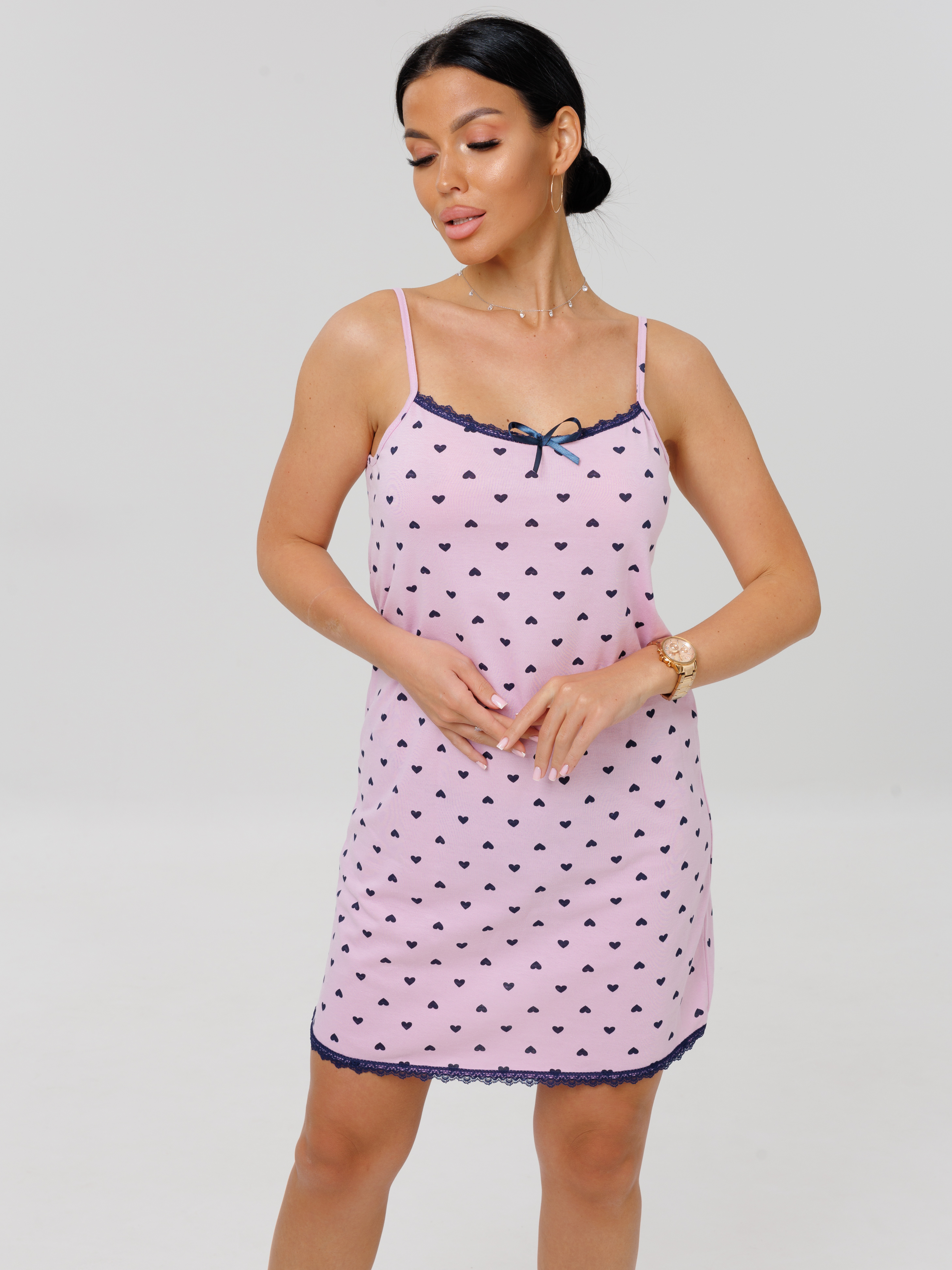 Женская сорочка на тонких бретелях, длиной до колена. Женская ночная сорочка отшивается из хлопкового трикотажного полотна, имеет широкий размерный ряд и яркие расцветки.