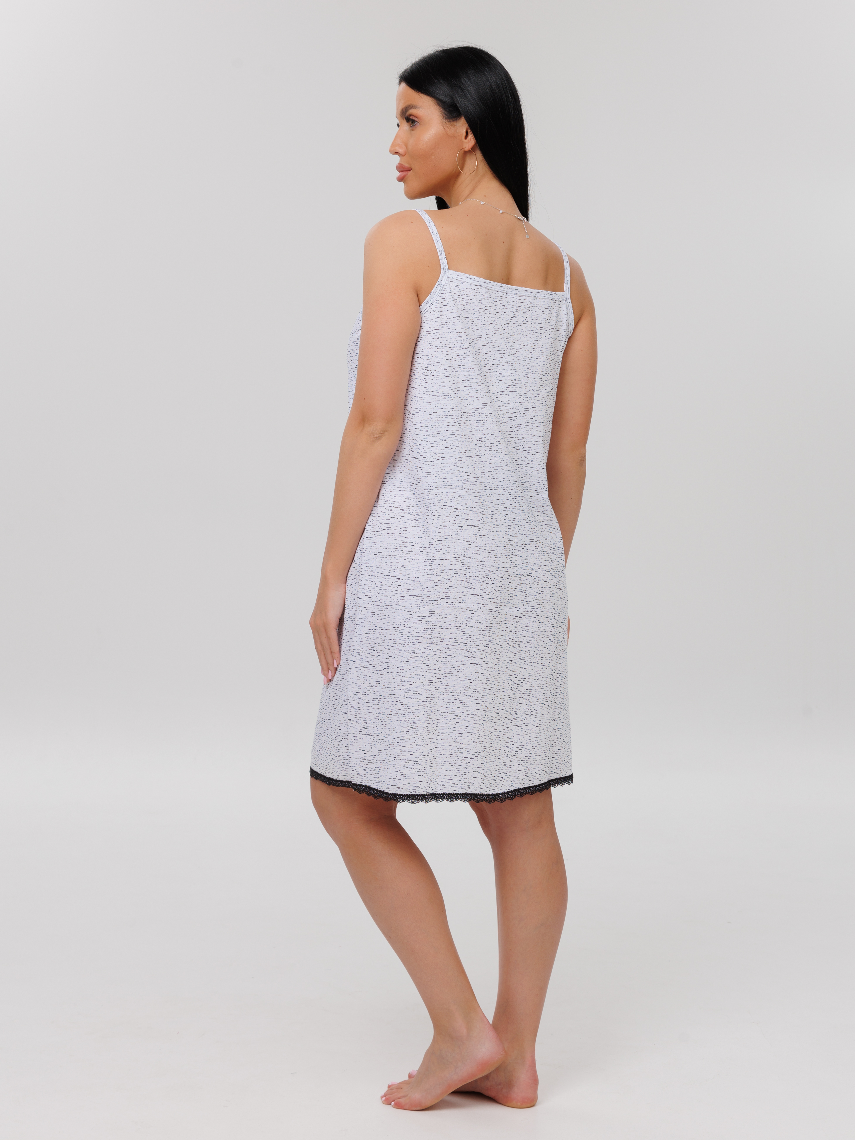 Женская сорочка на тонких бретелях, длиной до колена. Женская ночная сорочка отшивается из хлопкового трикотажного полотна, имеет широкий размерный ряд и яркие расцветки.
