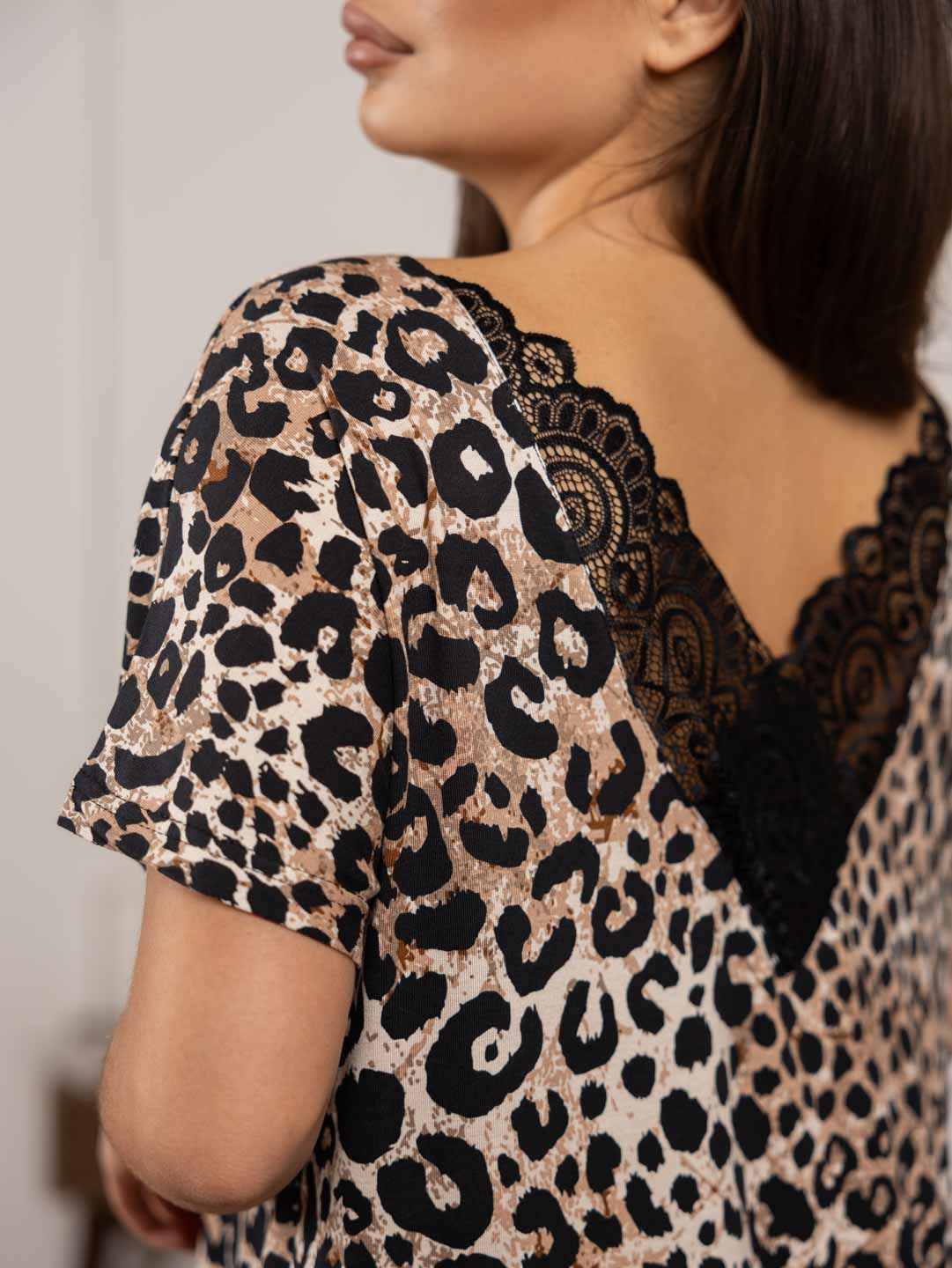 Сорочка из вискозы, со спущенной линией плеча, длиной чуть ниже колена. Универсальный крой позволяет носить кружевной вырез либо спереди, либо сзади.