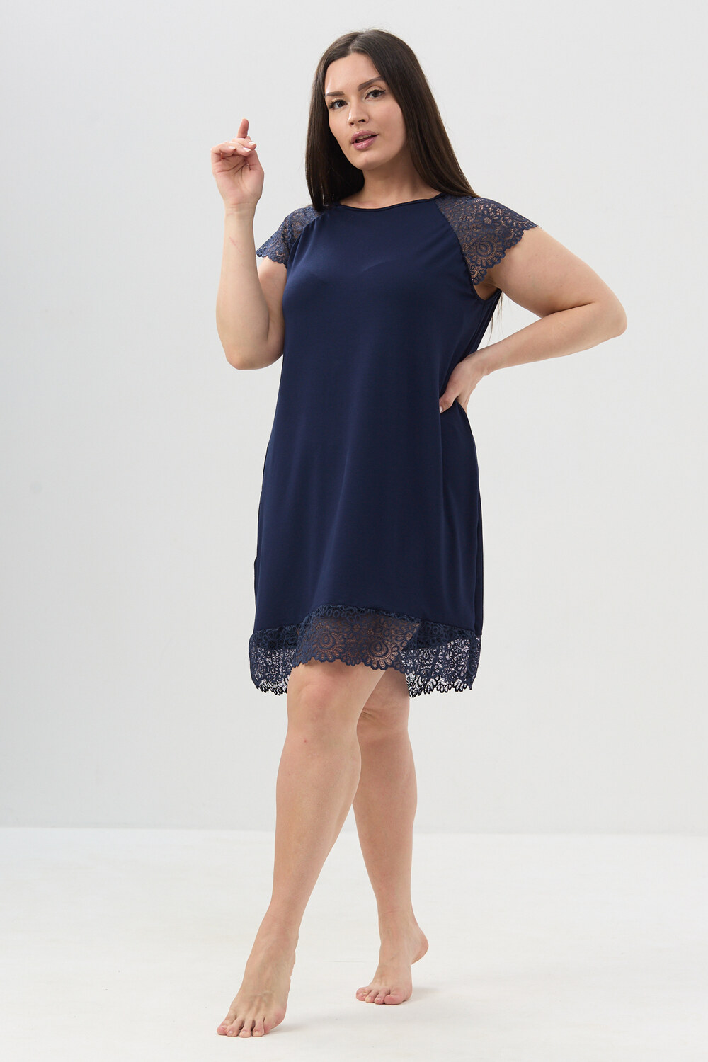 Сорочка женская из вискозы реглан кружево на рукавах и по низу.