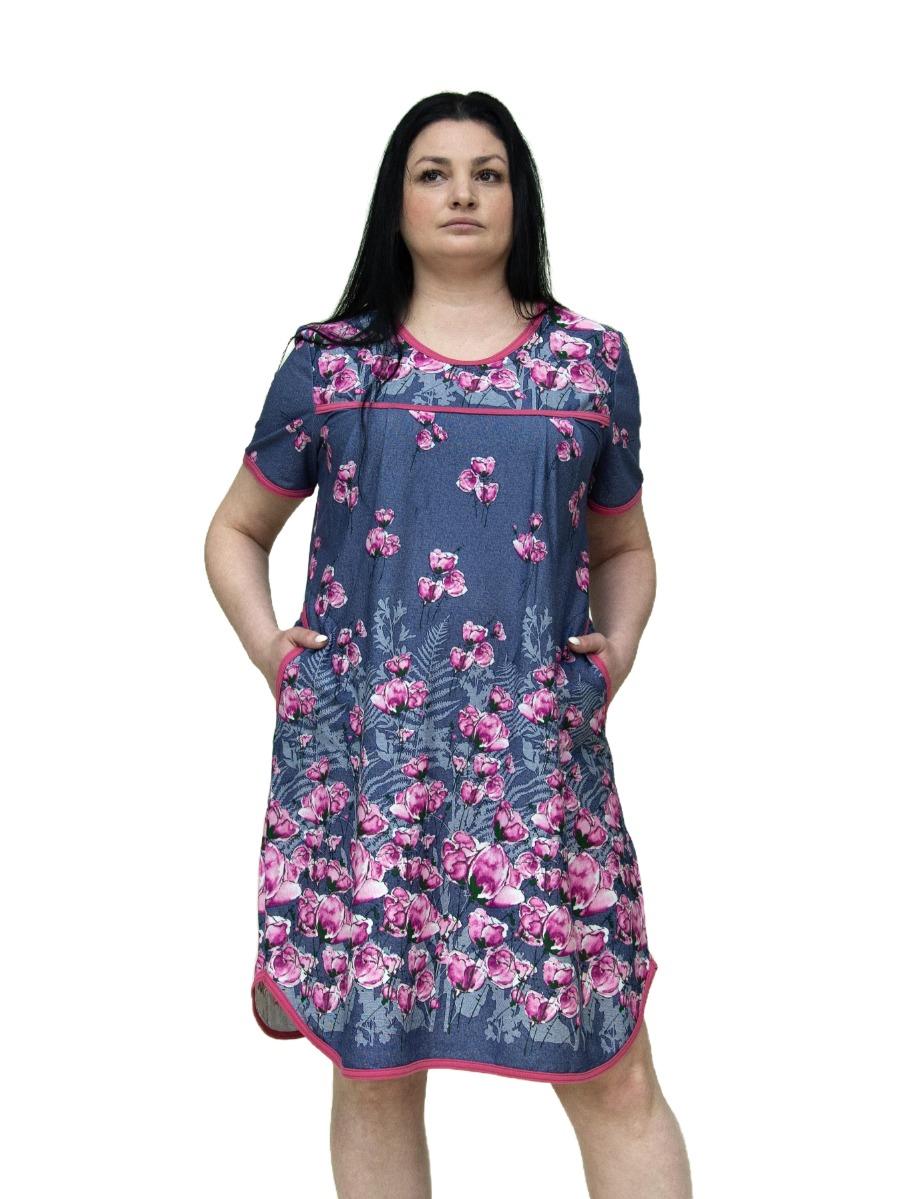 Женская туника "Лира" с короткими рукавами из кулирки (100% хлопок). Туника отшивается в разных расцветках. Женская хлопковая туника подходит в качестве домашней одежды, на замену халату.
