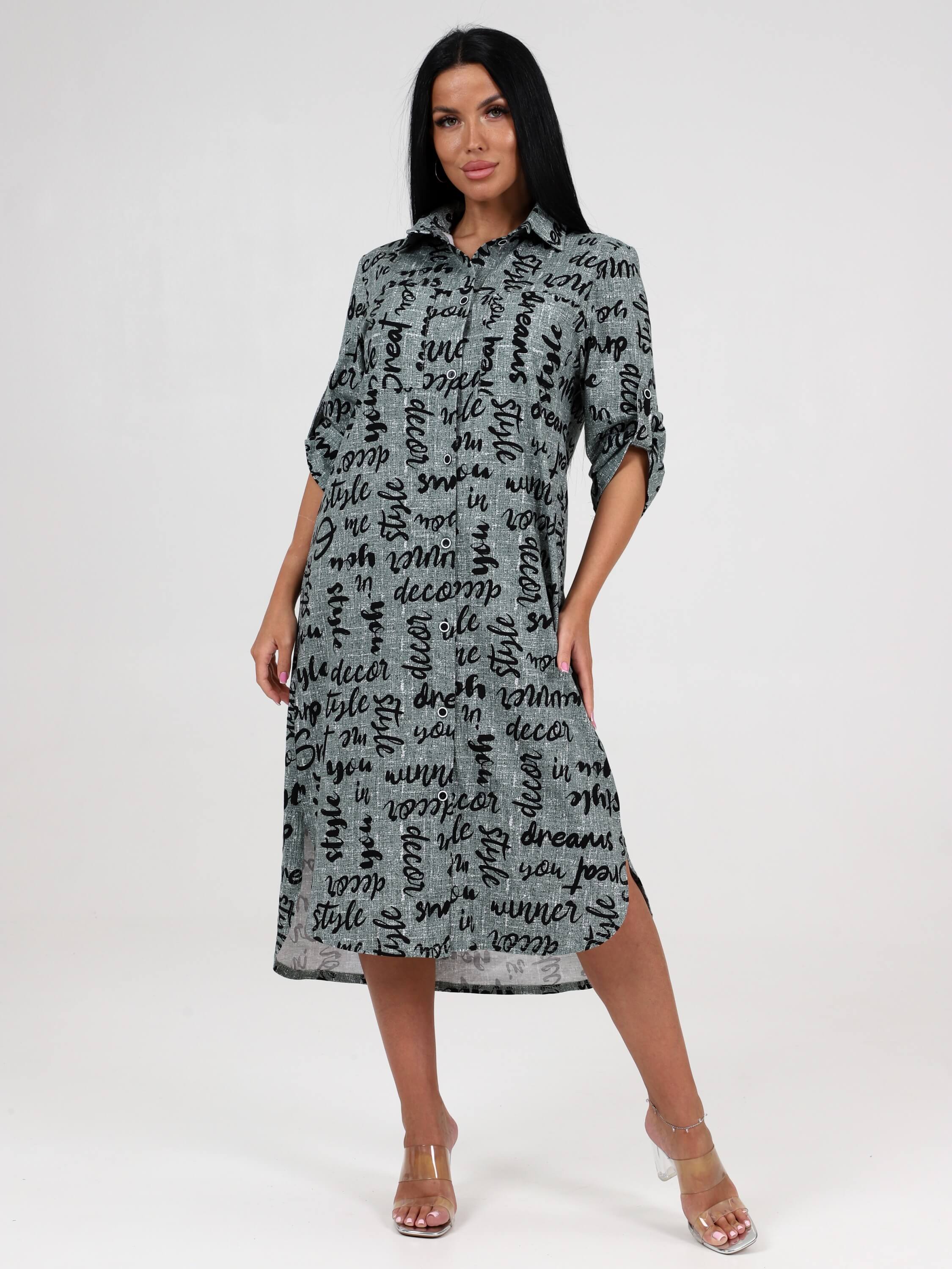 Туника трик. МИДИ (черн.надписи на зелен.рогожке)