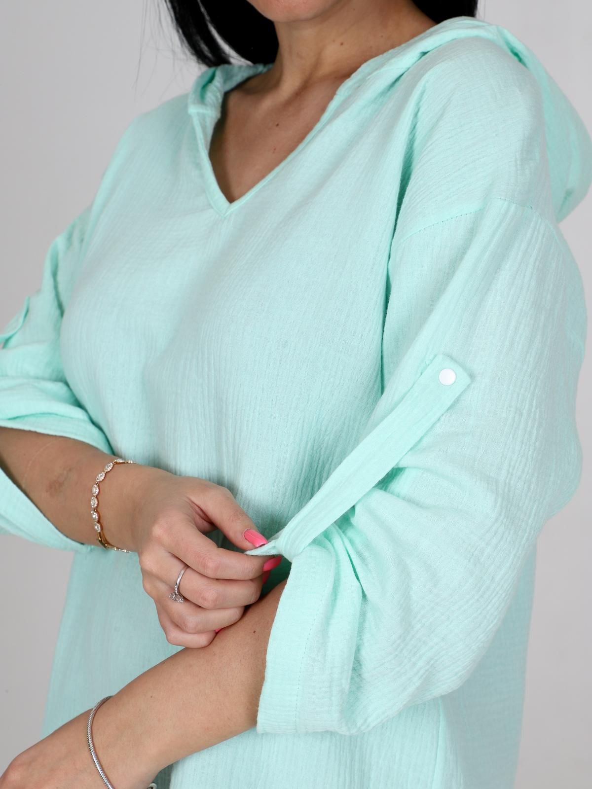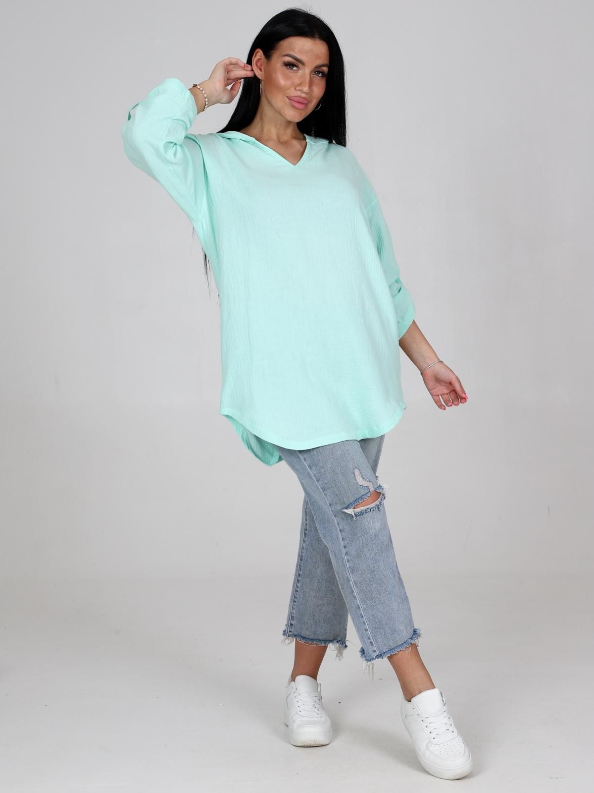 Женская туника из муслина — лёгкая, дышащая и комфортная одежда, подходящая для лета, пляжа, дома или повседневной носки. Муслин — 100% хлопок, который хорошо впитывает влагу, пропускает воздух и не вызывает аллергии. Такие туники часто имеют свободный крой, что обеспечивает свободу движений.