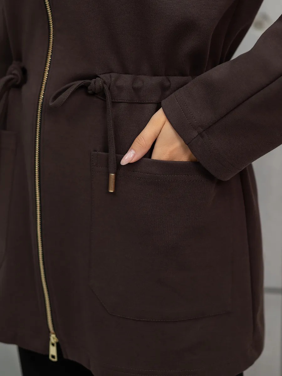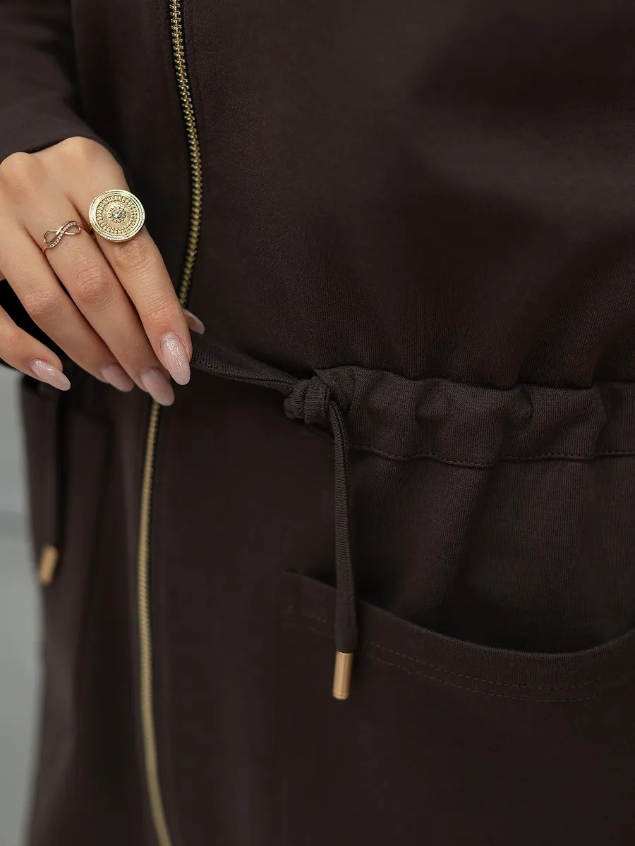 Трикотажная туника на молнии в универсальных оттенках — практичный и стильный элемент для повседневного и домашнего гардероба. Модель разработана с учетом современных трендов и комфорта: свободный покрой обеспечивает свободу движений, двусторонняя молния позволяет регулировать глубину выреза на ваше усмотрение, создавая удобство для любых ситуаций — будь то прогулка, встреча с подругами, пребывание дома или офисный образ. Мягкий трикотаж создает приятную тактильную текстуру, идеально подходит даже для чувствительной кожи. Эта одежда отлично подходит как для женщин, предпочитающих уют в условиях дома, так и для тех, кто выбирает лаконичный офисный стиль. В качестве обновления классического варианта, изделие дополнено поясом, благодаря которому легко подчеркнуть талию и придать стройность силуэту. Пояс регулируется по степени прилегания, благодаря чему изделие подходит под разный тип фигуры: plus size, оверсайз или стандарт. Трикотаж используемый при производстве отличается мягкостью, содержанием хлопка, что увеличивает воздухопроницаемость и комфорт даже при длительном ношении. Фактура материала плотная, что делает ту вещь актуальной не только для лета, но и для демисезонных и осенних ансамблей.