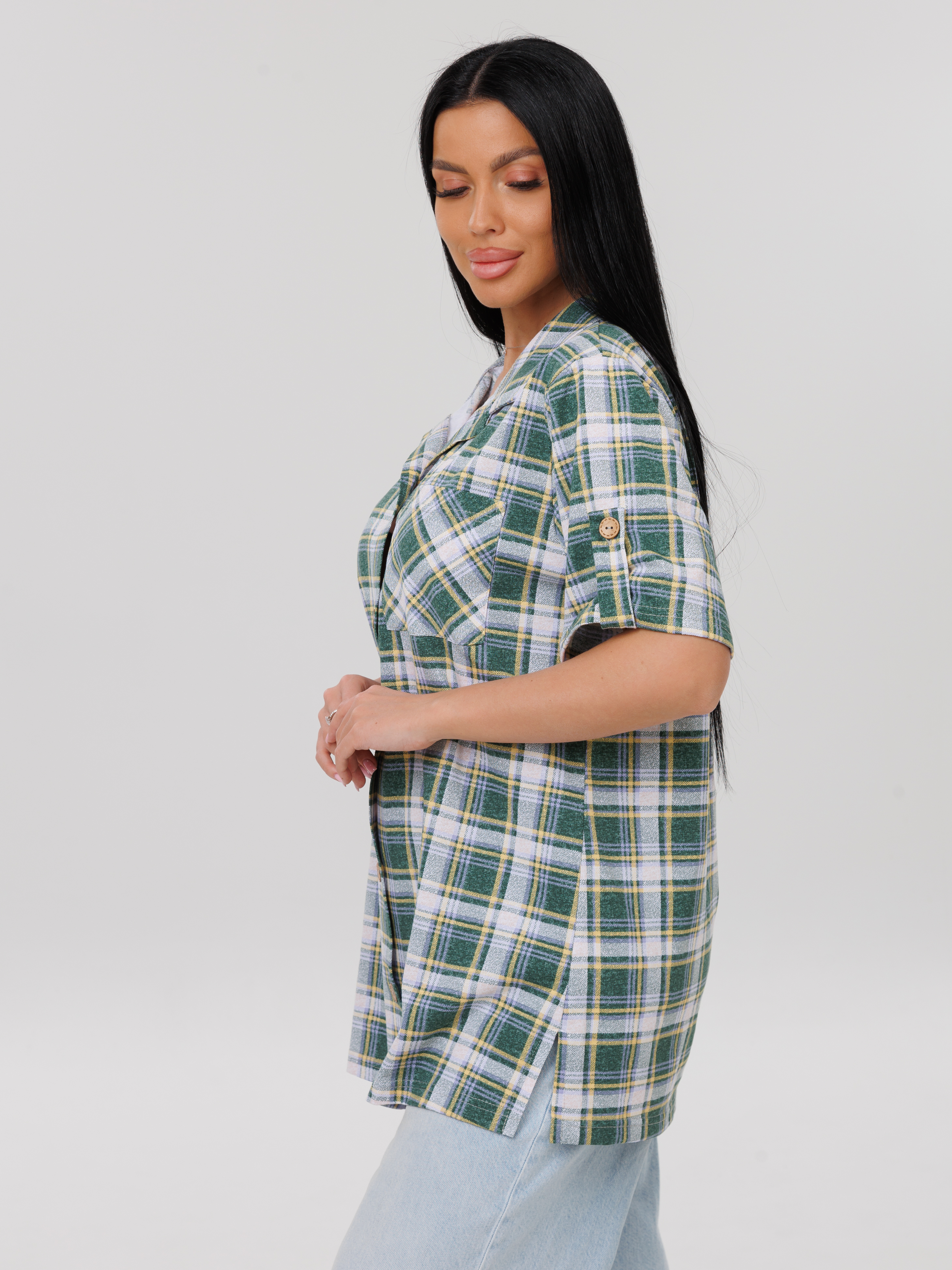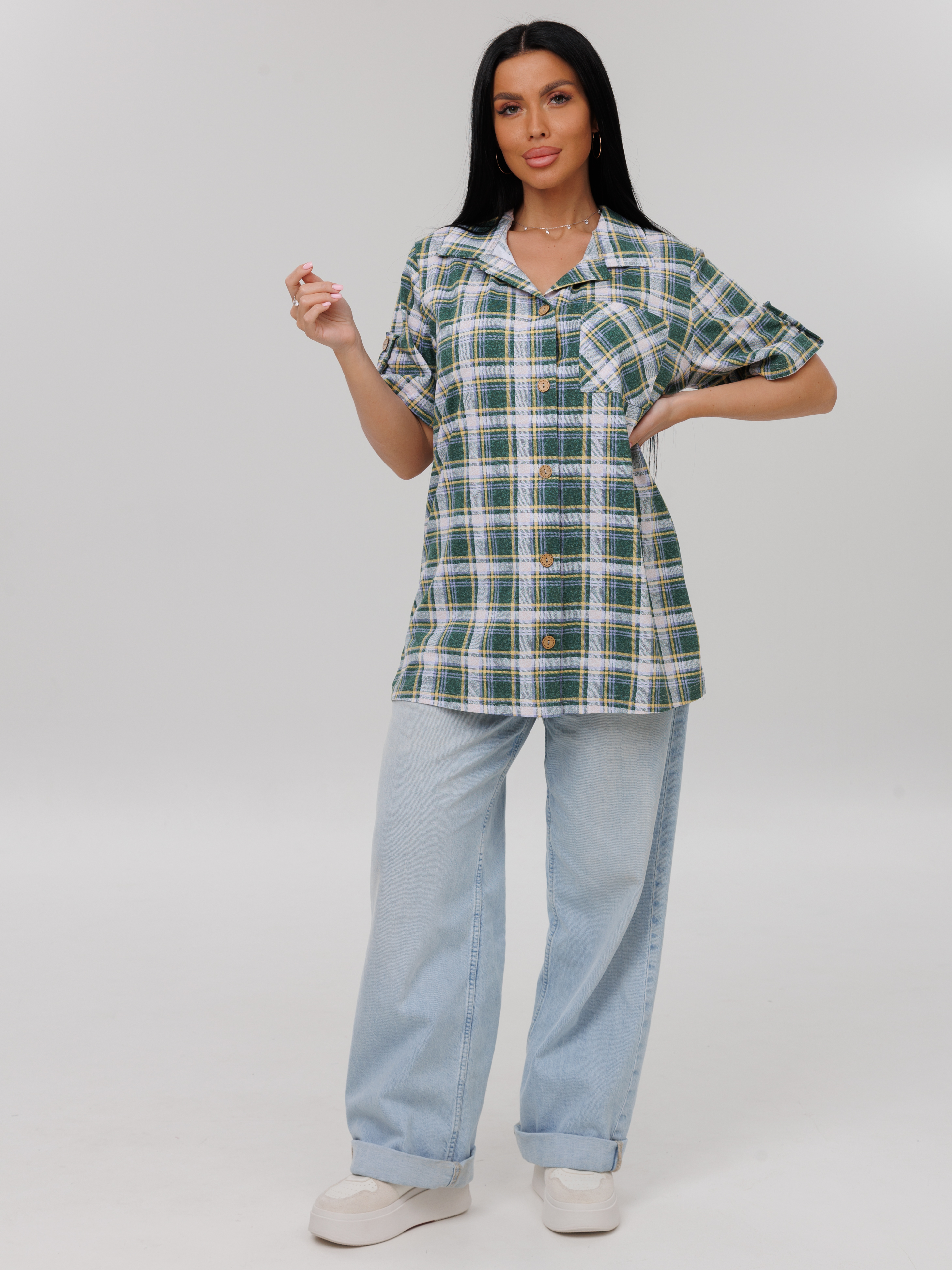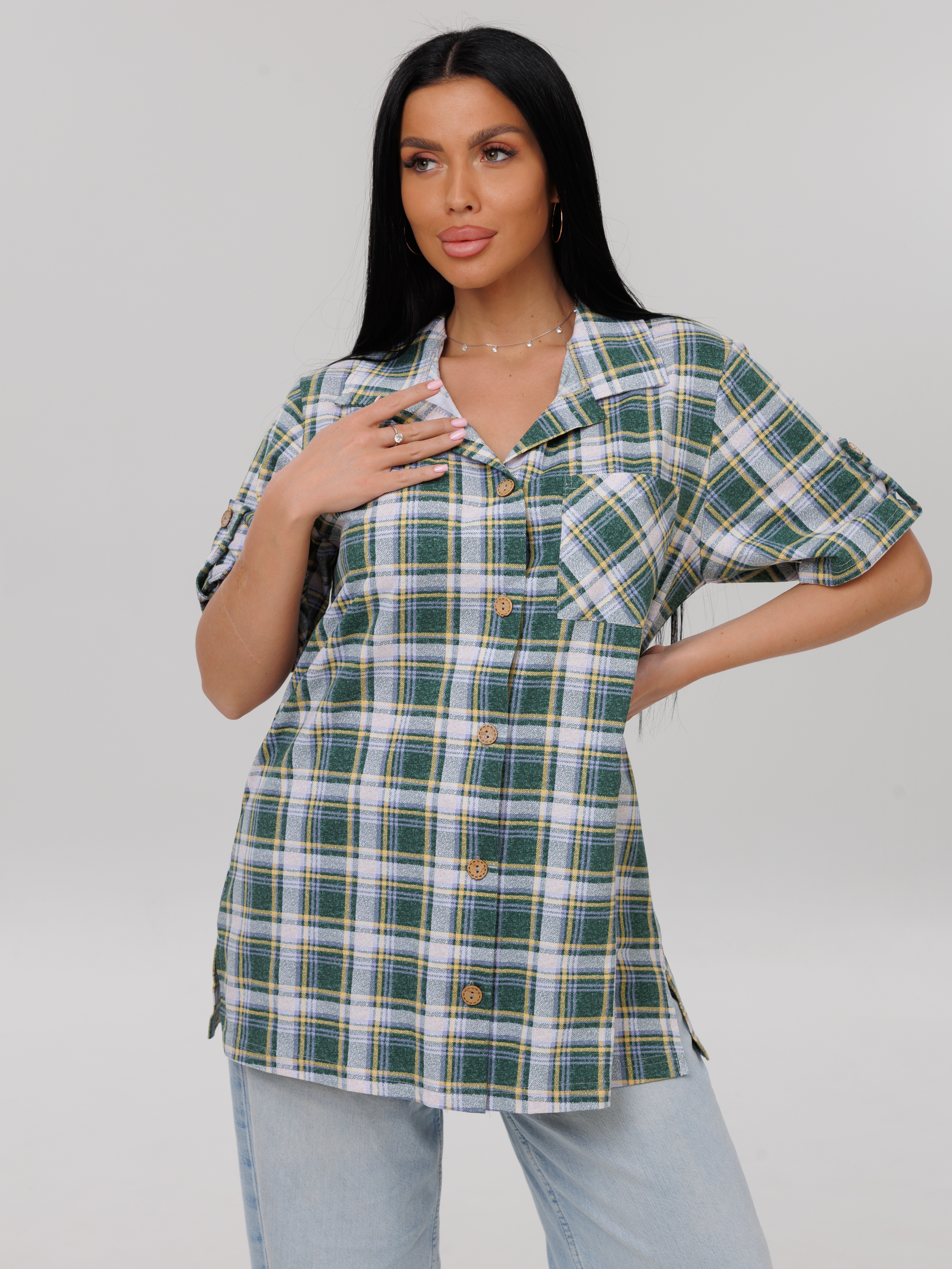 Женская туника на пуговицах из кулирки — это модель из хлопкового трикотажа с застёжкой на пуговицах, отложным воротником и длинным рукавом. Кулирка — тонкое трикотажное полотно, которое хорошо тянется, не мнётся и позволяет коже дышать. Такие туники подходят для дома, офиса, прогулок, дачи или путешествий.